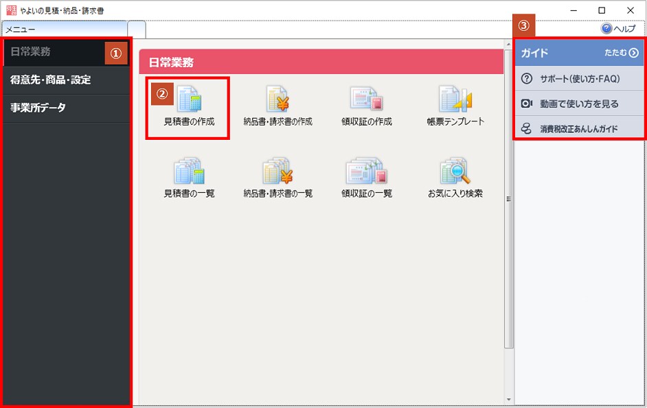 やよいの見積 納品 請求書の画面構成 やよいの見積 納品 請求書 サポート情報